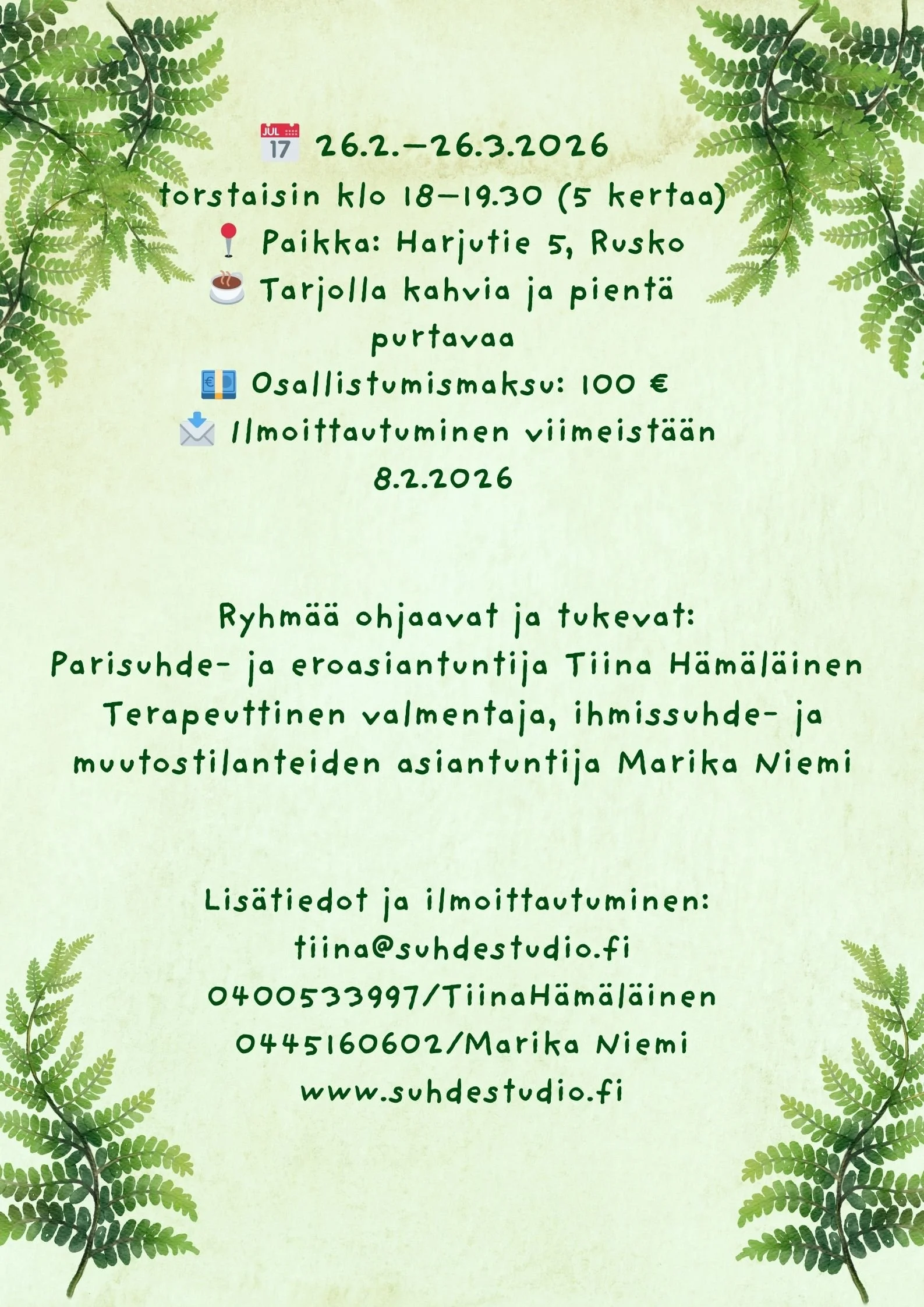 Ota ihmeessä yhteyttä jos pohdit onko ryhmä juuri sinulle, vastaamme mielellämme.